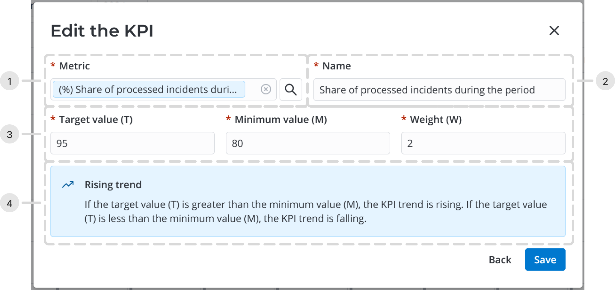 | Weight (W) | Y | Specify the importance of the KPI in the overall assessment of the monitoring object. |