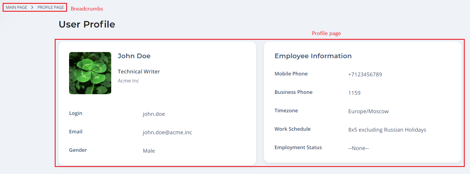 2. a Profile Widget that displays cards with the employee information.
