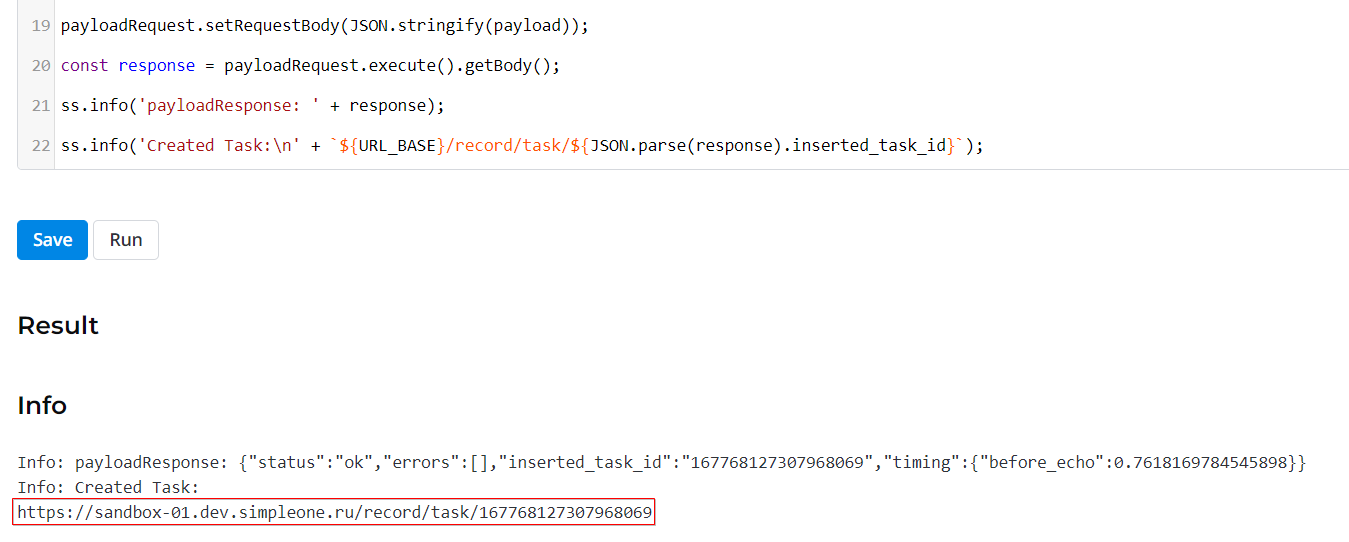 As a result, you receive a response to the API action /record/sys_api_action/161831494014244852.
