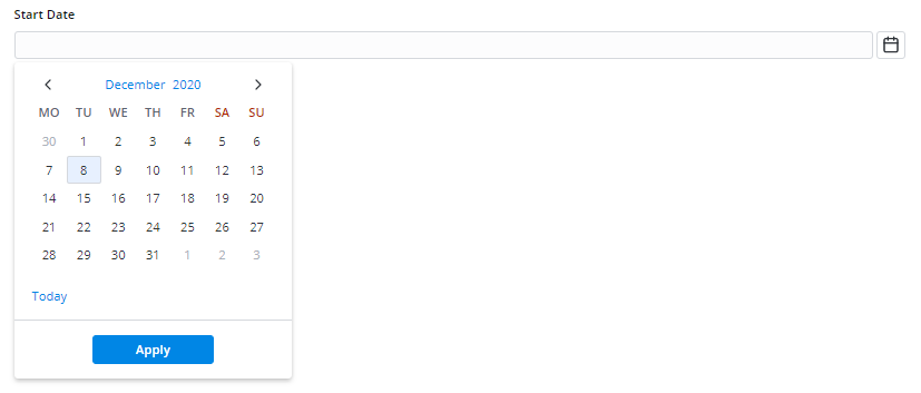 In the SimpleOne interface, it is displayed as an input field with a date picker.