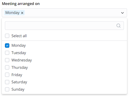 In SimpleOne interface, it is displayed as a drop-down list with checkboxes. One or more days can be selected.
