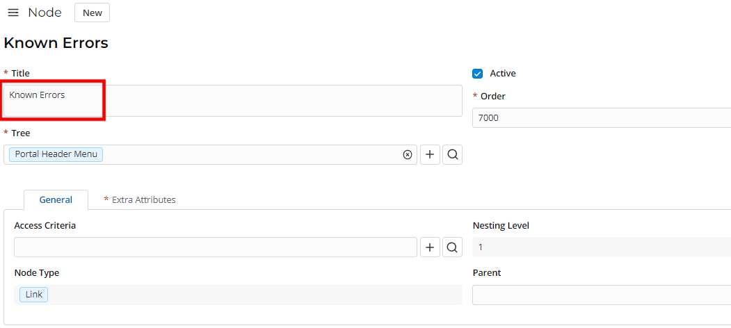 4. Create necessary records in the Portal Nodes related list. You need to specify only the title, order, and (optionally) parent item for your new item.