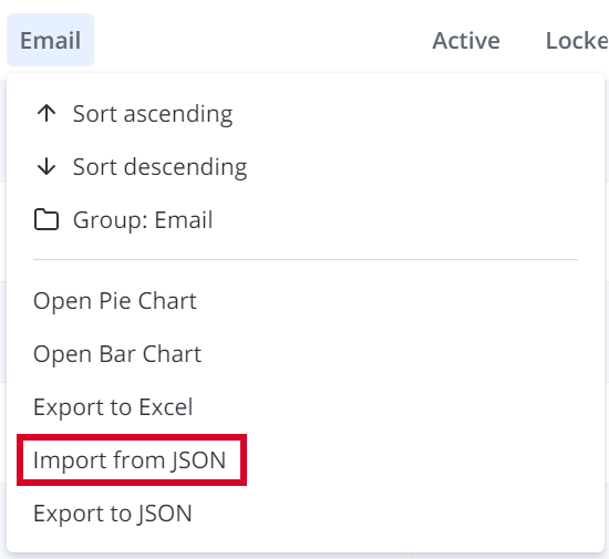 2. Click the column title area and select Import from JSON in the context menu.