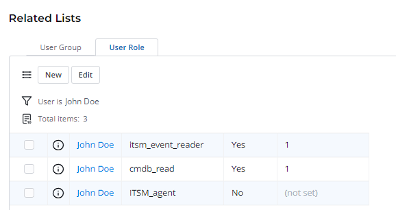 The Edit button is not available for some of the related lists. The button is displayed on related lists, which logic suggests adding an existing record to the current record. For example, you can add a user criterion to a user record through the User Criteria related list. But connecting a user role is prohibited because of the logic in the User Role table: its records are created for each user individually.