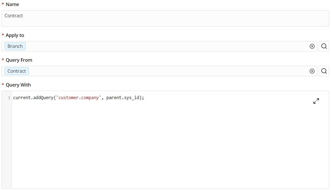 | Query with | Y | In this field, you can put down a script specifying the records to include from the specified table. |