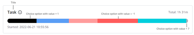 The Choice Timeline widget is used in task forms of the Task (task) table and its child tables. By default, it is not displayed on the form. It shows when and for how long a particular task was in different states, determined by options of a specific choice column.