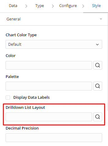 • (optional) In the General panel, use the Drilldown list layout option to configure the view of the data slice drilled down. Click the magnifier icon and, in the modal window, select the desired list view of the source table.