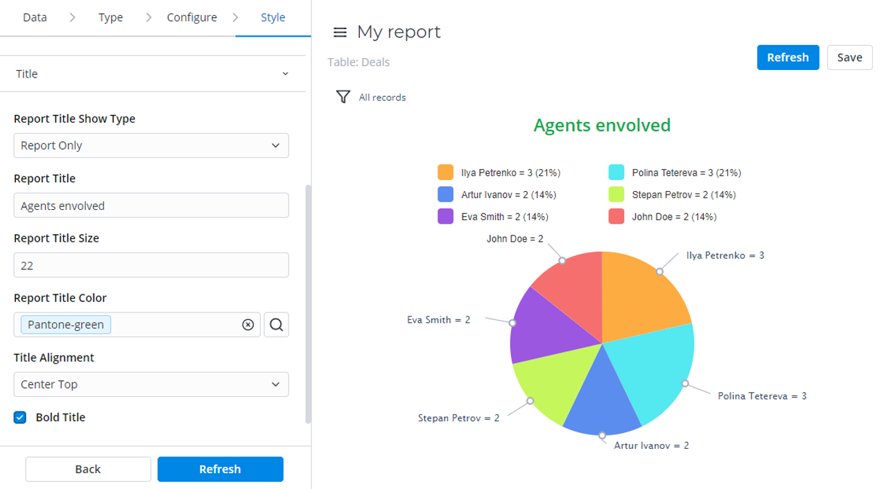 4. In the Report Designer, customize your report data and its style using the tabs.
