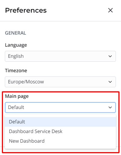2. In the Main page field, choose the dashboard you want to set as the main page.