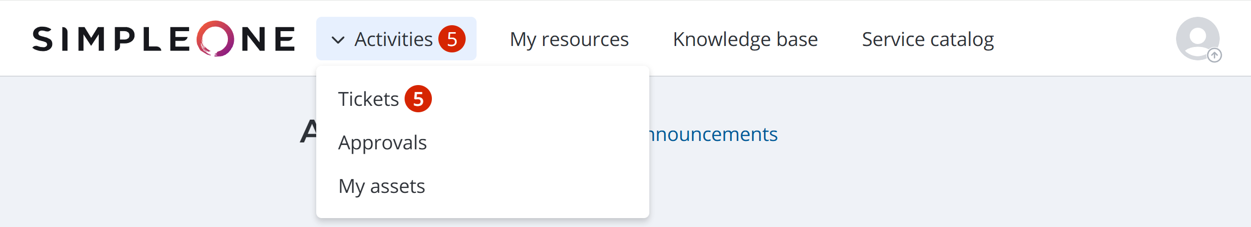 The Self-Service Portal (SSP) contains the current user's workspace, Activities. Here, you can track tickets (incidents and service requests) add manage approval requests.