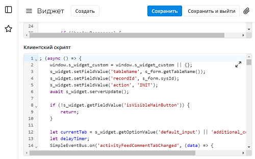 Клиентская логика также может быть реализована в рамках виджета клиентского скрипта:
