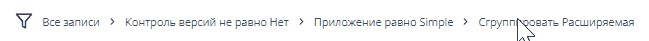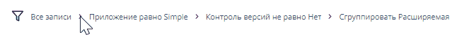 В SimpleOne навигационная цепочка – это элемент интерфейса, который отображает все примененные условия для фильтрации. Вы можете увидеть навигационную цепочку выше панели конструктора условий рядом с иконкой воронки .