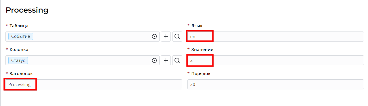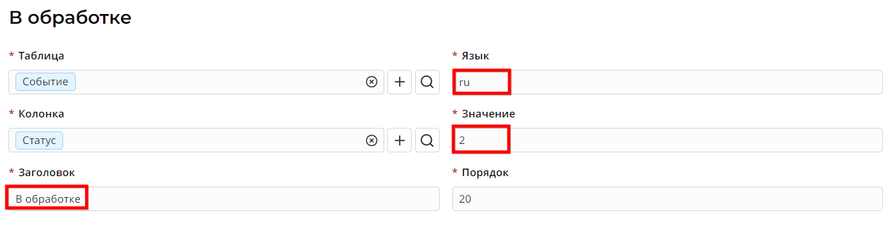 | Порядок | Да | Введите число, чтобы определить порядок опции в выпадающем списке. Опции расположены в порядке возрастания. |