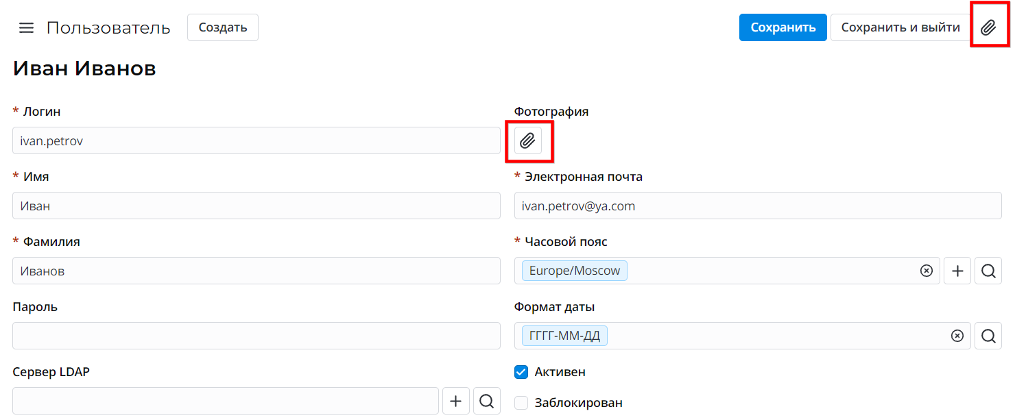 На скриншоте ниже отмечены два действия вложения на записи формы: