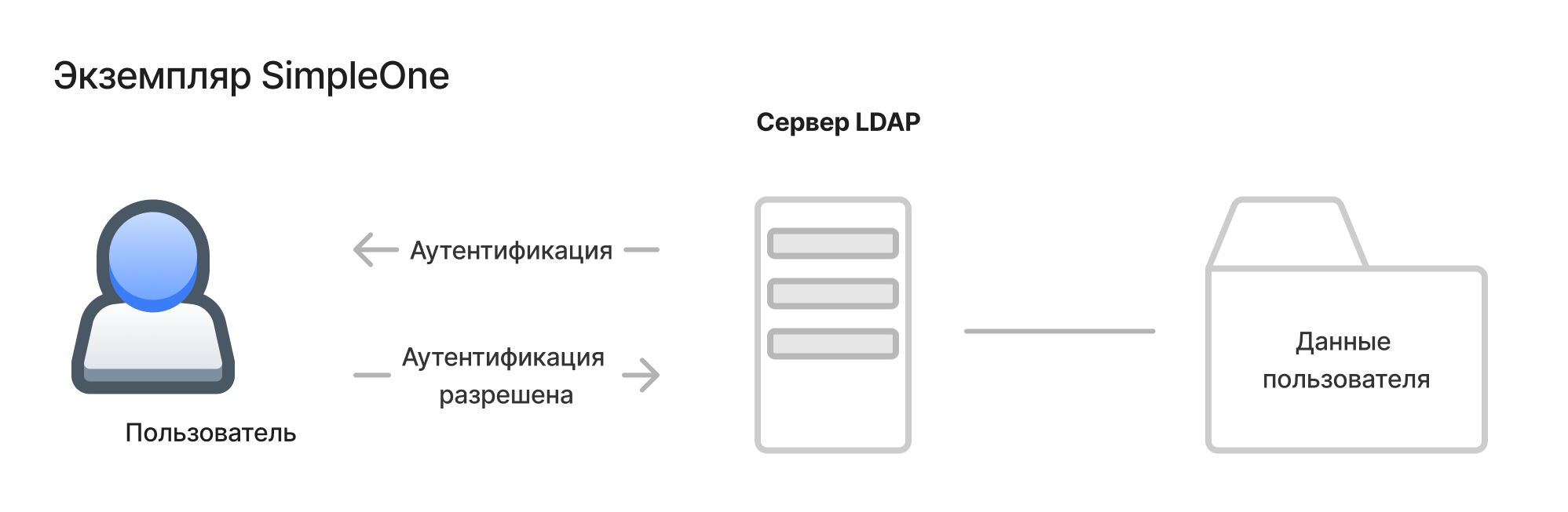 В этой схеме клиент-серверной инфраструктуры экземпляр SimpleOne должен быть клиентом, подключающимся к серверу LDAP.