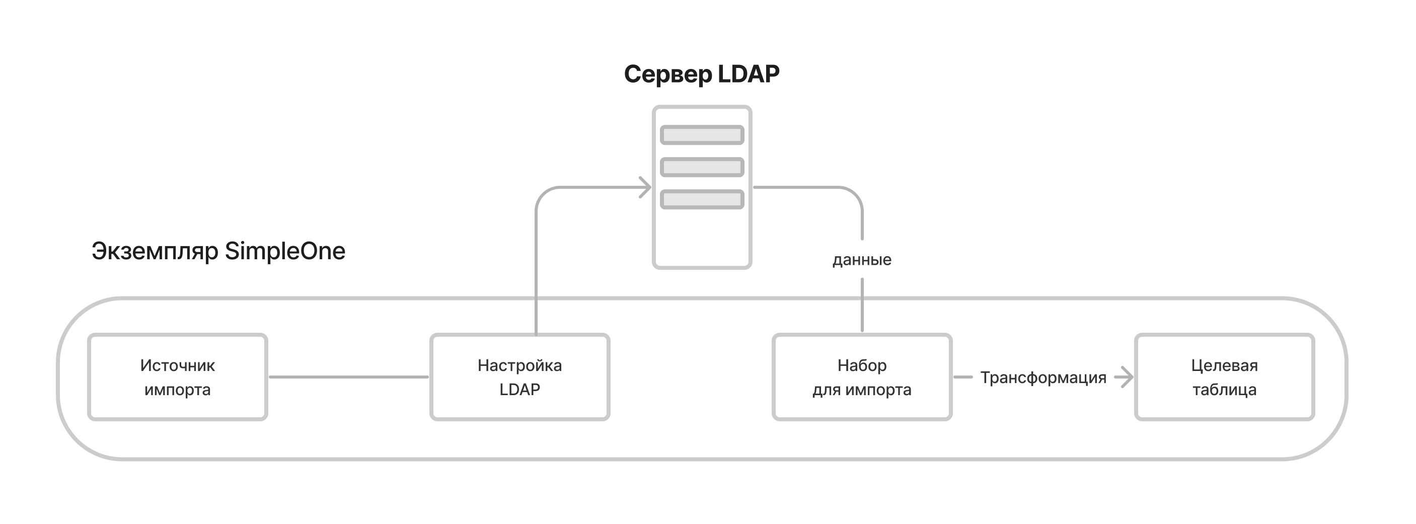 На схеме ниже показан процесс импорта данных с сервера LDAP.