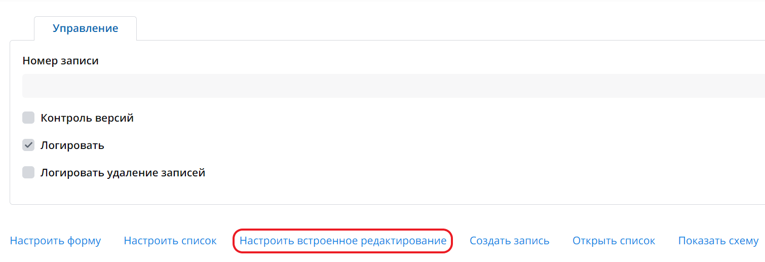 На форме нужной таблицы нажмите Настроить встроенное редактирование.