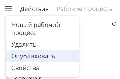 6. Когда рабочий процесс завершен, откройте бургер-меню и нажмите Опубликовать.