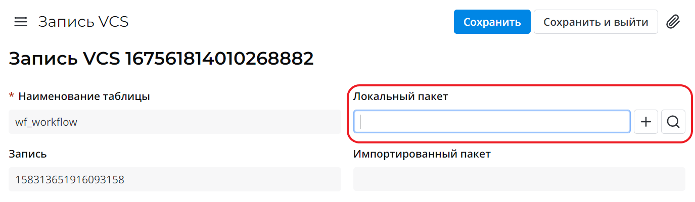В результате запись VCS рабочего процесса будет помещена в указанный локальный пакет. Она готова к экспорту и установке.