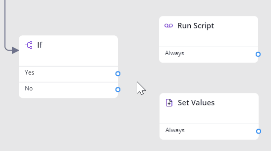 Чтобы создать переход, зажмите кнопкой мыши выход, из которого нужно создать переход, и перетяните его на действие, на которое совершается переход.