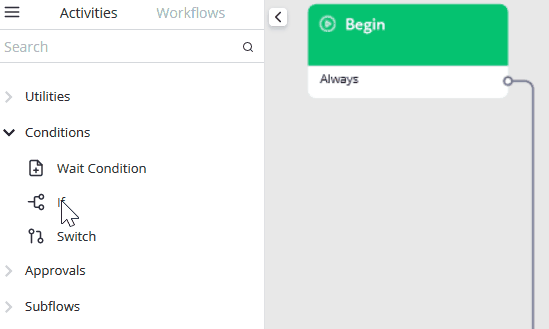 Чтобы добавить действие, перетащите его с панели управления на холст.
