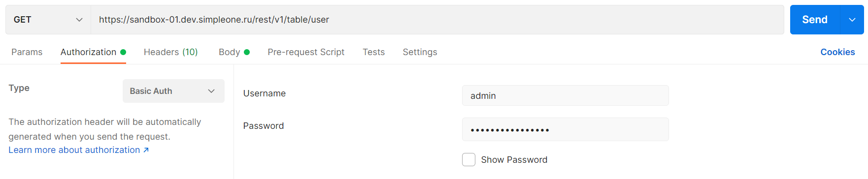 • Basic Auth – аутентификация включает в себя отправку запроса с проверенным именем пользователя и паролем.