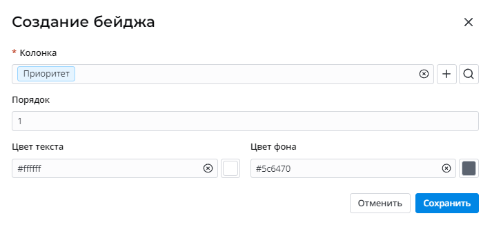 1. Нажмите Создать бейдж на записи канбан-доски. Появится модальное окно.