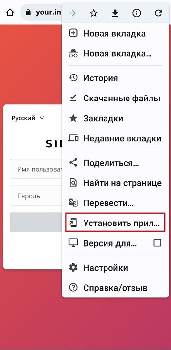 • Нажмите , чтобы открыть боковое меню, и выберите Установить приложение.