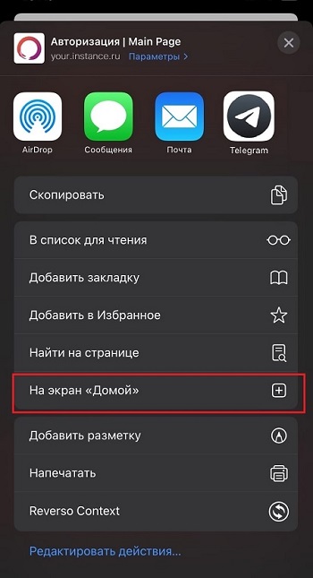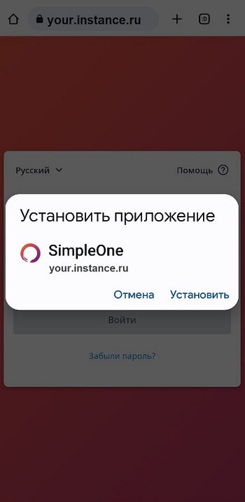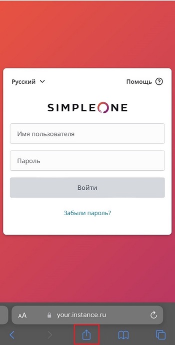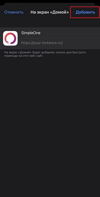 • Нажмите на ссылку Добавить приложение "SimpleOne" на главный экран внизу экрана.