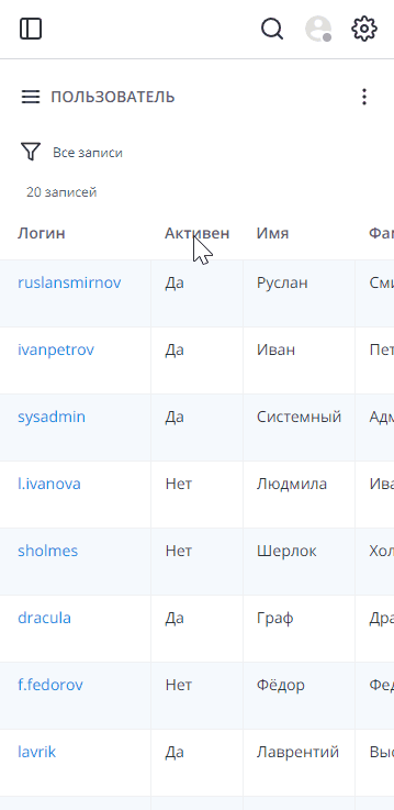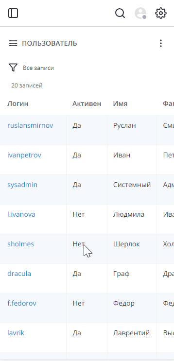 Чтобы использовать заголовок колонки в качестве условия для фильтрации, нажмите на него в списке.