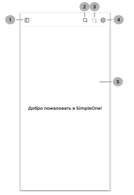 3. Меню пользователя – позволяет просматривать профиль, управлять учетной записью и действиями в системе SimpleOne.
