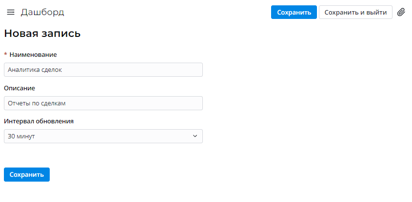 ДашбордНетДашборд, к которому относится создаваемый элемент. Это поле заполняется автоматически.