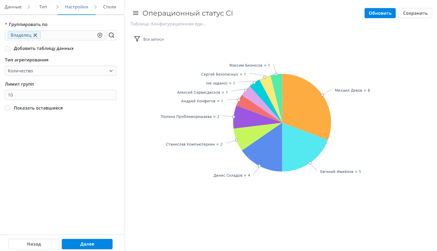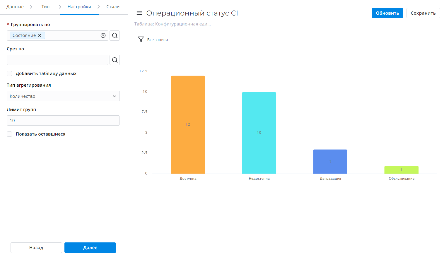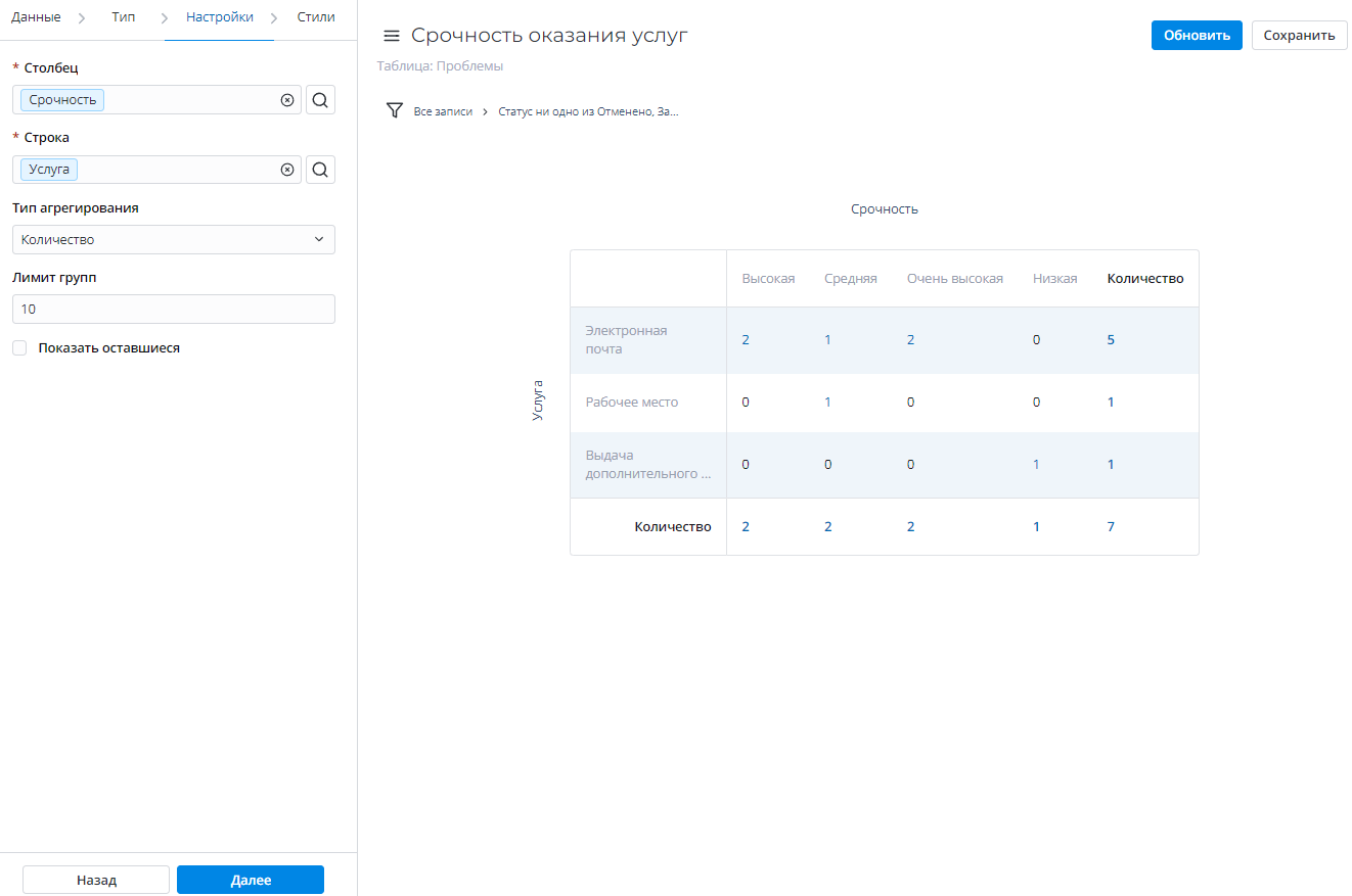 Задайте лимит групп данных, которые будут показаны в отчете.