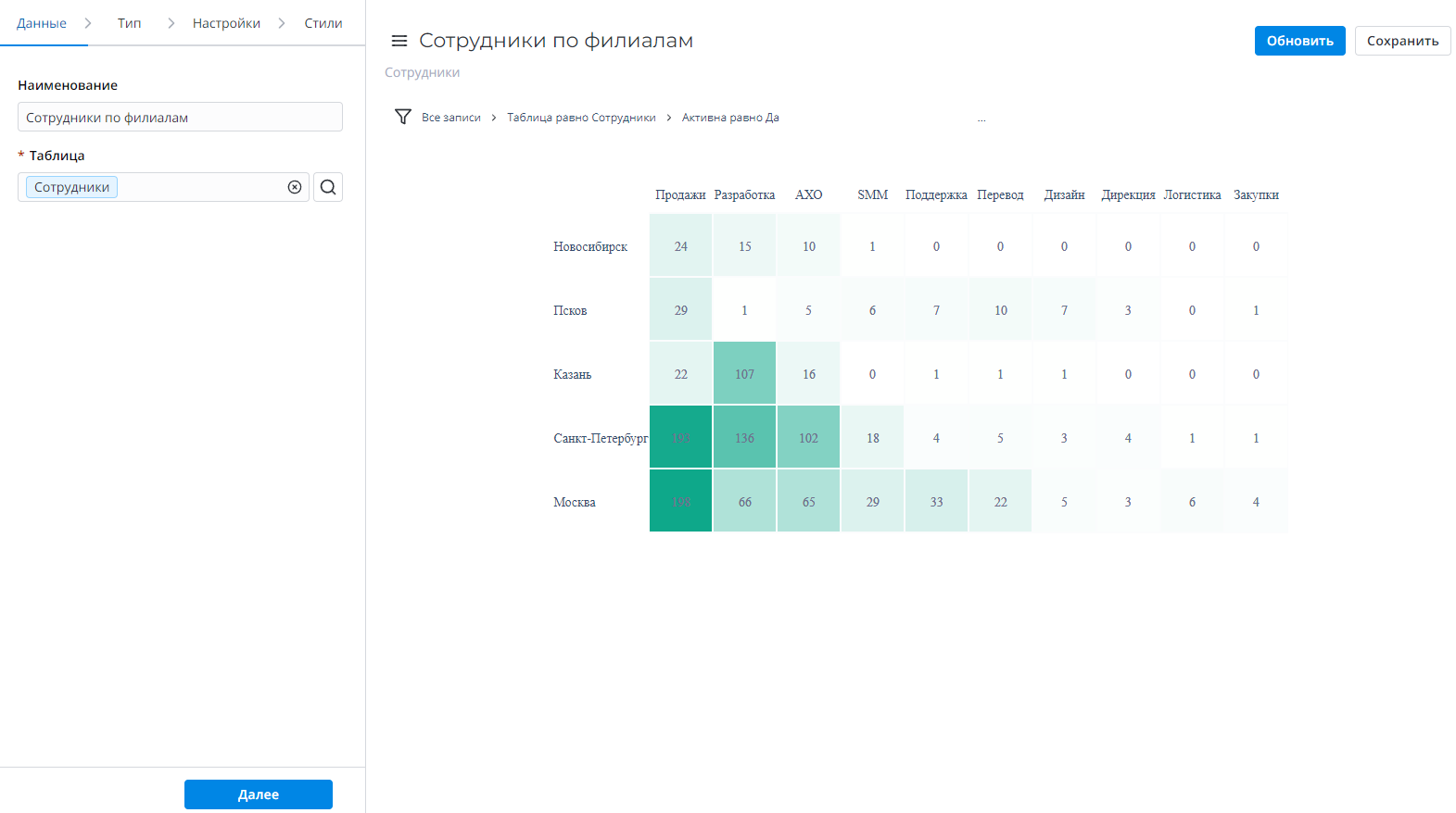СтолбецДаВыберите колонку таблицы, которая будет использоваться как столбец для тепловой карты отчета.