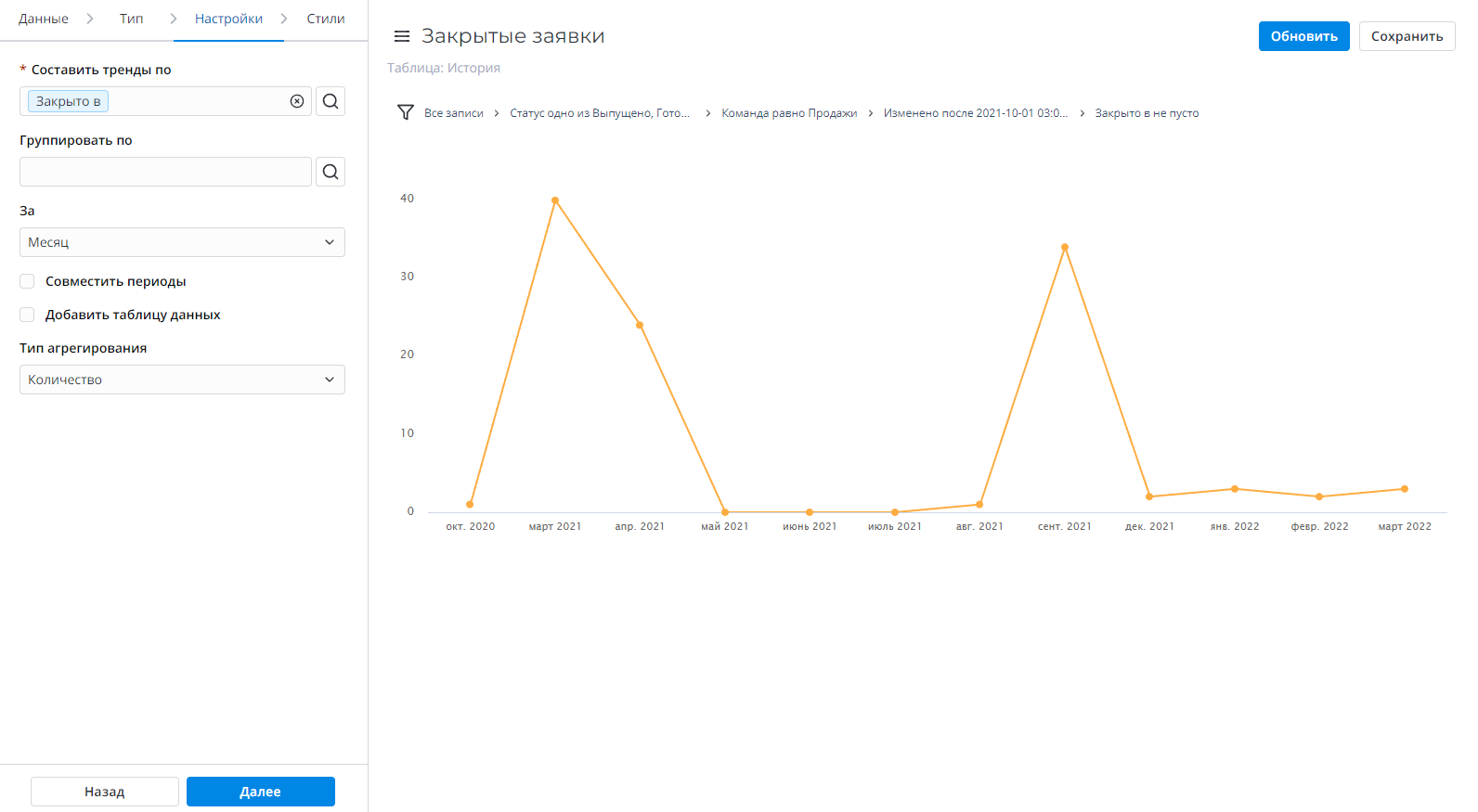 Добавить таблицу данныхНетУстановите флажок, чтобы показать таблицу с данными под вашим отчетом.