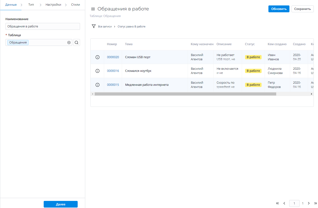СписокДаВыберите представление списка таблицы для отчета.