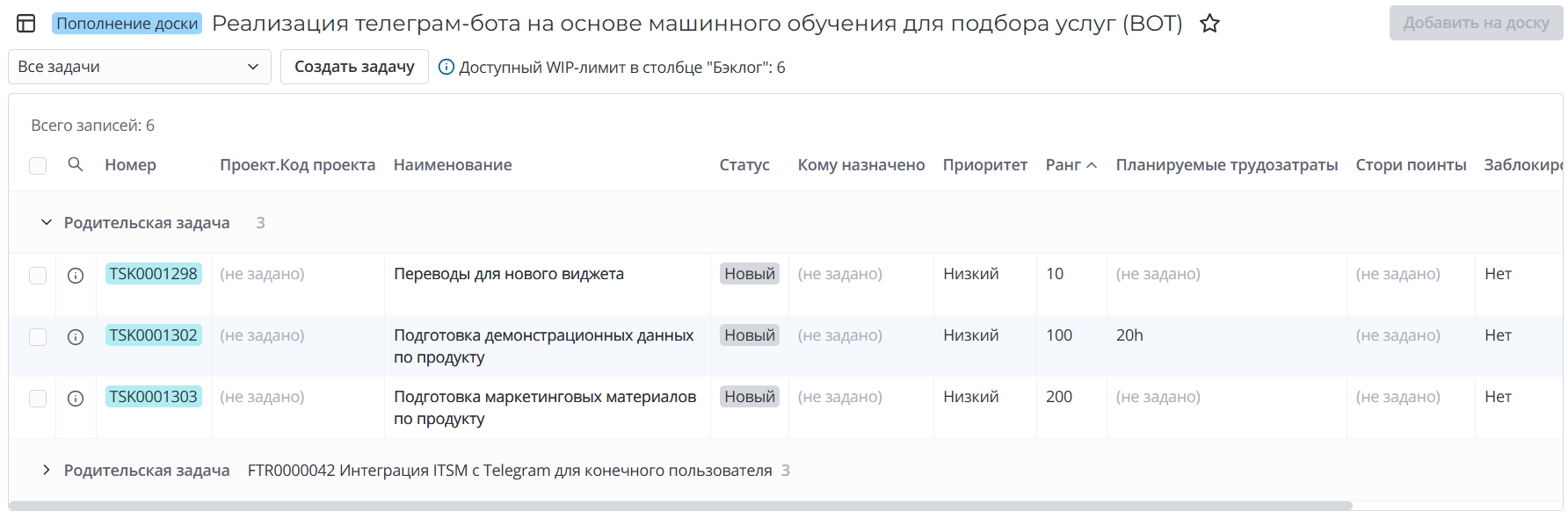 Дождитесь окончания добавления задач на доску проекта.