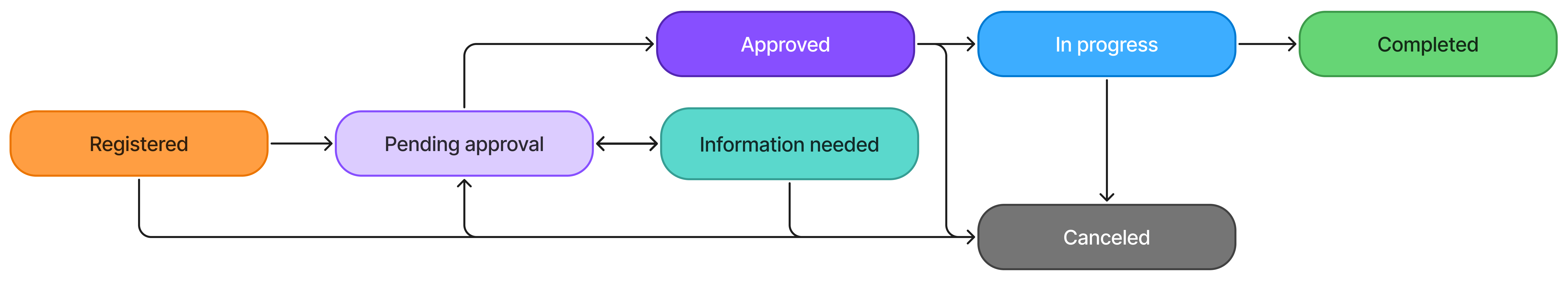 - Complete the required fields and click Save or Save and exit. The request will be created in the Registered state.